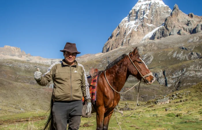 En TrekMex Andes trabajamos con guías y staff locales de Queropalca, una de las puertas naturales a Huayhuash. Su origen en la zona garantiza conocimiento real del terreno, clima, rutas, accesos, comunidades y logística local.